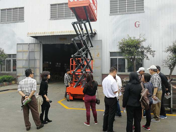 El 23 de abril de 2018, la delegación tailandesa llegó a Niuli Company y visitó la exhibición de varios productos de Niuli bajo el liderazgo de nuestro departamento de comercio exterior. Los productos mostrados incluyen carretilla elevadora diesel, carretilla elevadora eléctrica, transportista, barredora eléctrica, plataforma de trabajo aéreo, estante, carretilla elevadora sin conductor, placa de cola, etc. La demostración de operación será llevada a cabo por el operador.